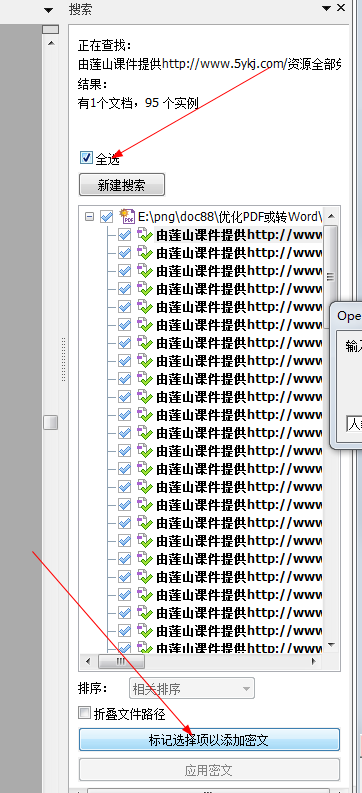 2、选中查找出的部分或全部并【标记选择项以添加密文】